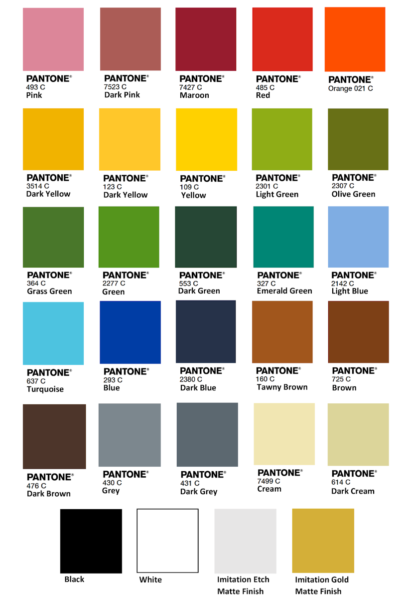 Festival Glass use the universally accepted coated Pantone Colour System for the ceramic paints we offer. For the most accurate colour matching we recommend choosing from our recommended ceramic colour chart. However, Pantone colour matching can be achieved upon request, although some colours may be subject to additional costs.